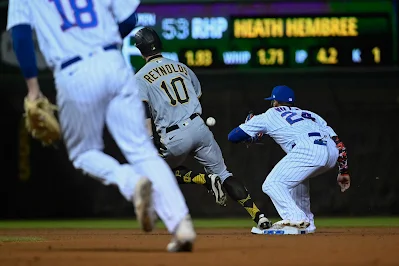 Yet, due to the fact that the Cubs shifted, third base was left wide open. This is where Reynolds show his high baseball IQ and made a beeline for third. Thus, a hit that didn't look too dangerous resulted in this wacky triple.